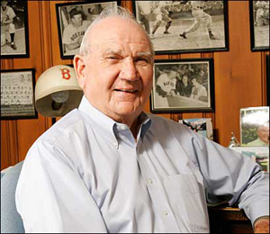 .WHERE ARE THEY NOW Boo Ferriss By Benjamin Pomerance May 24, 2011 One second. That’s all it takes to alter a career. A man pitches from the stretch position, throws an overhand curve in a full count at a crucial point in a midsummer’s game. The same motion he’s used ten thousand times, the same thing he’s done for more than 300 innings in two-and-a-half seasons for the Boston Red Sox. Except this time is different. As he throws the pitch, something pops in his shoulder. He grimaces, jogs to the dugout, comes back out and pitches the next two innings in pain because “that’s just the way the game is played.” The next day, when the team moves on from Cleveland to Chicago, he can’t even raise that right arm above his head. And that’s it. One moment, and everything changes. Until that moment, everything seemed to be right in the life of David “Boo” Ferriss. In two years, the pitcher from Shaw, Mississippi, had conquered the American League. Cooperstown might as well have started clearing space for his plaque. When the Red Sox called him up in 1945, he won his first eight starts, then went on to win 13 more for a 21-10 record and Rookie of the Year honors. The following season, he went 25-6 for one of the finest teams Boston has ever seen, a battering ram of a ballclub that won 104 games and the American League pennant. Entering his third season of major league ball, Boo Ferriss was viewed by teammates, opponents, and sportswriters as the most dominant pitcher in the league, if not all of baseball. Then came that cold July night in Cleveland, the evening when a torn labrum effectively tore down a career that seemed destined to become one of the greatest in baseball history. Yet speak to Boo Ferriss today, and there is no bitterness, no sadness in the elderly man’s voice. Now 89 years old and living in a small Mississippi town just 10 miles from where he was born, the man who has every reason to agonize over the past speaks only with joy and pride of his time, though too short, living out his boyhood dream. “I’m mighty blessed,” he says. His rich drawl is strong but raspy at times, traces of the asthma that forced his medical discharge from the U.S. Army months prior to the end of World War II still present. “The game has been mighty good to me. When I was growing up, I always wanted to play in the big leagues, if I could. And I was able to do that. I’m mighty blessed to have been able to do what I dreamed of doing.” Mention that night in Cleveland, and the career-changing consequences at a time when team doctors didn’t know how to properly treat such an injury, and the answer is always the same. “The Lord just had other plans for me, I guess,” the ex-ballplayer says. “That’s all just water under the bridge now.” Spending hours gritting his teeth over what might have been is simply not his nature. Boo Ferriss has long since packed up and moved on. He moved on to coaching, first as the pitching coach of the Red Sox for four years and then in college ball, where he spent 26 seasons transforming Division II Delta State University from a marginal baseball program into a national title contender. He compiled a record of 639 wins and only 387 losses over those two-and-a-half decades at Delta State, earning three NCAA regional titles and three trips to the College World Series before retiring in 1988. “Those were great years,” he states of his time as a college coach. “I loved being able to work with young ballplayers and watching them develop into fine young men. We’re fortunate to live in a great area for baseball talent, and I was fortunate to have so many great ballplayers come play for me at Delta State.” The former coach still keeps close tabs on his old recruits. He rattles off names and statistics in rapid-fire succession, pointing out how successful many of his players have become in their post-Delta State careers. One of them, catcher Eli Whiteside, even has a World Series ring, a member of last season’s championship-winning San Francisco Giants team. The players still keep close tabs on their skipper, too. “Hardly a day goes by without hearing from a player or two,” Ferriss says. “That’s really nice. So many of them are so good about keeping in touch with me, and I appreciate that.” Most of those players have families of their own now, he laughs. Many of them are grandparents. Yet they still find time for a letter or a phone call or a visit to their old coach, the man who says his favorite statistic of his coaching career is the graduation rate of his players – an astonishing 92 percent – because “that’s what they were here for: an education.” This is what dulls the pain of that career-shortening injury decades ago in Ohio. The man who was always regarded as one of the true gentlemen of the game is still surrounded by friends. And to hear him speak, you get the distinct impression that those friends are more valuable to him than any shutout he ever pitched, any victory he ever had. Yet there were plenty of victories, and plenty of shutouts, too. The first wins came on a vacant lot near the family home in Shaw, where Ferriss' father, William Douglas Ferriss, farmed cotton and taught baseball. William Douglas Ferriss immersed himself in the game as a player, coach, and umpire throughout several counties, and often took his boys with him to watch him work. Still, Boo Ferriss never recalls his father pushing him into playing the game of baseball. If any pushing was done, he remembers, it was of his own making. “Of course, there was no organized Little League then,” he says. “So my friends and I would go to the open lot by my home, and we’d chose up sides and play.” Often, he continues, if he couldn’t rally the other boys into a game, he’d uncork fastballs at the front steps of his parent’s house, imagining that he was throwing from a mound in the major leagues. His nickname was born during those for